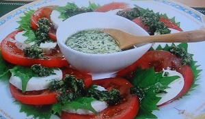 しかし、秋元さくらシェフはバジルとモッツァレラチーズの代わりにシソとはんぺんを使って激安カプレーゼに。