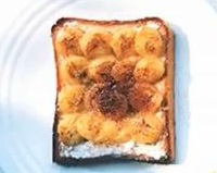 クリームチーズを温めた食パンに塗り、バナナを乗せて、シナモンを少しかけて食べるとのことです。