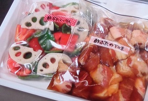 3.②の袋に①の玉ねぎを入れ袋をとじ全体をもみ込む。