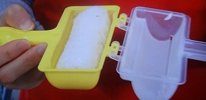 そして、容器の切れ目からのりを入れて再び振るとのり巻きが完成!