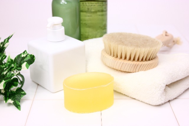 1.ローラーを床に置いて あおむけにねて、ローラーを背中の真ん中に当てる。