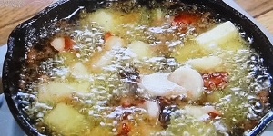 1.おろしニンニクとオリーブオイルと塩コショウをボウルに入れ混ぜ合わせマリネ液を作る。