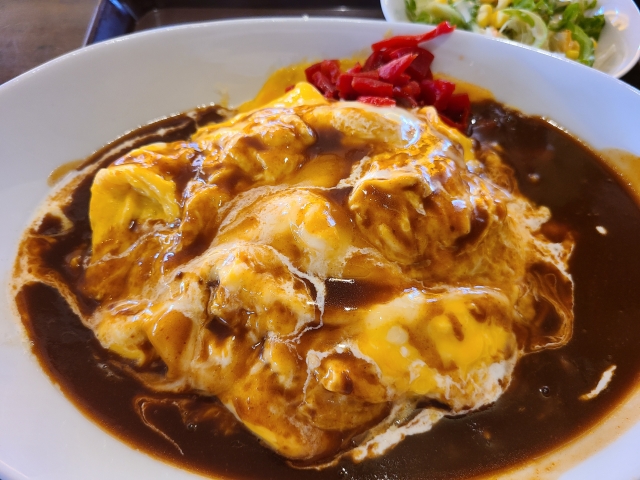 6.器にベビーリーフ、ミニトマトと共に盛り、トマトソースをかければ出来上がり!
