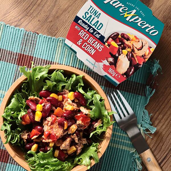 赤インゲン豆やコーンのミックスとチャンクタイプのツナと二層になった缶詰です。